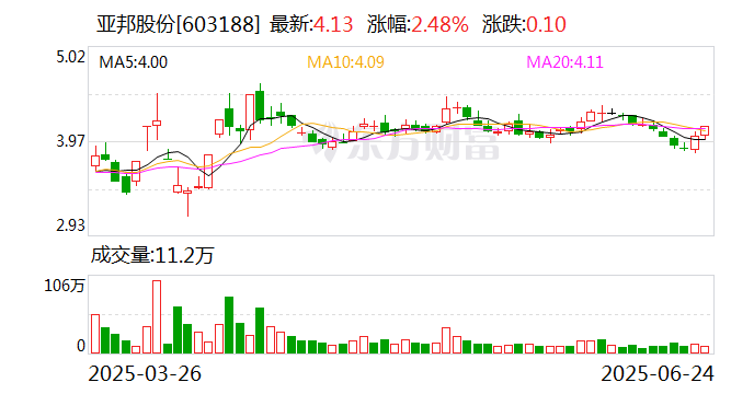 亚邦股份(SH 603188,收盘价:4.13元)6月24日晚间发布公告称,公司第七届第十五次董事会会议于2025年6月24日在公司召开。会议审议了《关于公司拟公开挂牌转让子公司100%股权的议案》等文件。