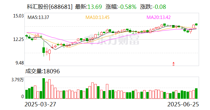 证券时报·数据宝统计显示,科汇股份今日收盘价为13.69元,下跌0.58%,日换手率为1.73%,成交额为2488.85万元,全天主力资金净流入40.62万元,近5日该股累计上涨2.32%,近5日资金合计净流出60.80万元。