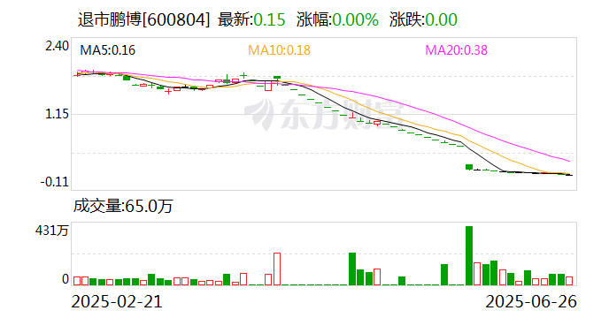 退市鹏博(维权)(600804)今日平盘报收,全天换手率4.67%,成交额954.83万元,振幅14.29%。龙虎榜数据显示,营业部席位合计净卖出20.91万元。