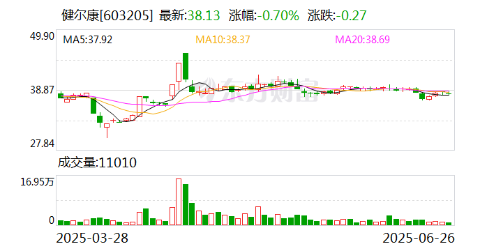 证券时报·数据宝统计,截至发稿,健尔康收盘价为38.13元,下跌0.70%,本期筹码集中以来股价累计下跌2.05%。具体到各交易日,6次上涨,6次下跌。