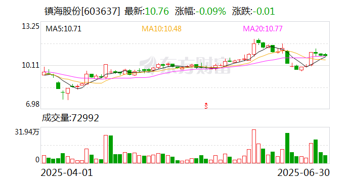 镇海股份6月30日大宗交易平台出现一笔成交,成交量18.80万股,成交金额202.29万元,大宗交易成交价为10.76元。该笔交易的买方营业部为华泰证券股份有限公司总部,卖方营业部为中信证券股份有限公司上海分公司。
