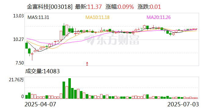 金富科技发布公告称,2025年7月2日14:00-15:00,金富科技接受深圳辰锋科技创业投资有限公司等投资者调研,公司董事会秘书吴小霜等人参与接待,并回答了投资者提出的问题。