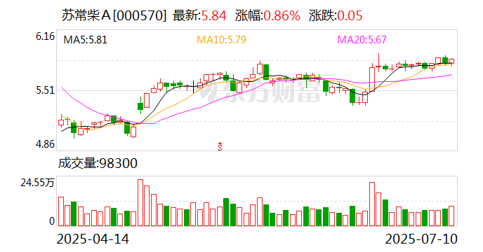 2025年一季度,苏常柴A实现收入8.98亿元,归母净利润4372万元。