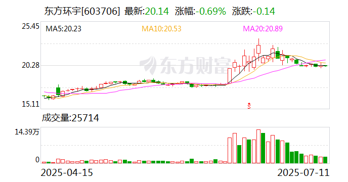 证券时报·数据宝统计,截至发稿,东方环宇收盘价为20.14元,下跌0.69%,本期筹码集中以来股价累计下跌6.50%。具体到各交易日,3次上涨,6次下跌。