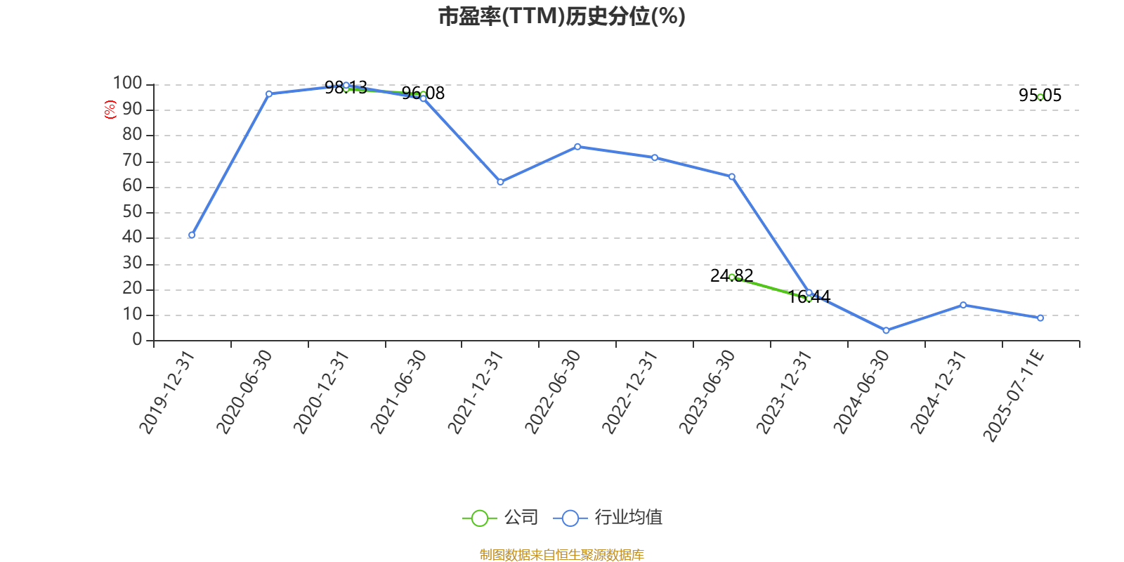 市盈率、市净率为负时,不显示当期分位数,会导致折线图中断。