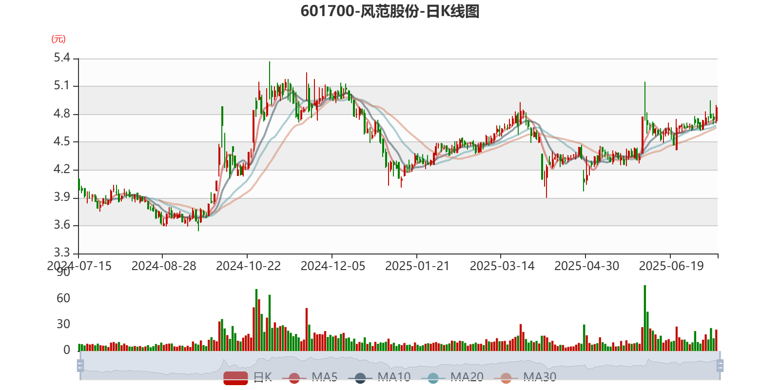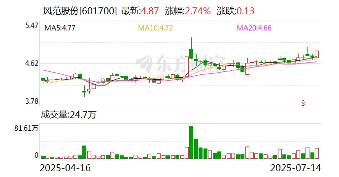 中证智能财讯风范股份(601700)7月14日晚间披露业绩预告,预计2025年上半年归母净利润800万元至960万元,同比下降88.2%-90.17%;扣非净利润亏损5500万元至6500万元,上年同期盈利7906.16万元。以7月14日收盘价计算,风范股份目前市盈率(TTM)约为284.75倍-310.15倍,市净率(LF)约2.23倍,市销率(TTM)约1.98倍。