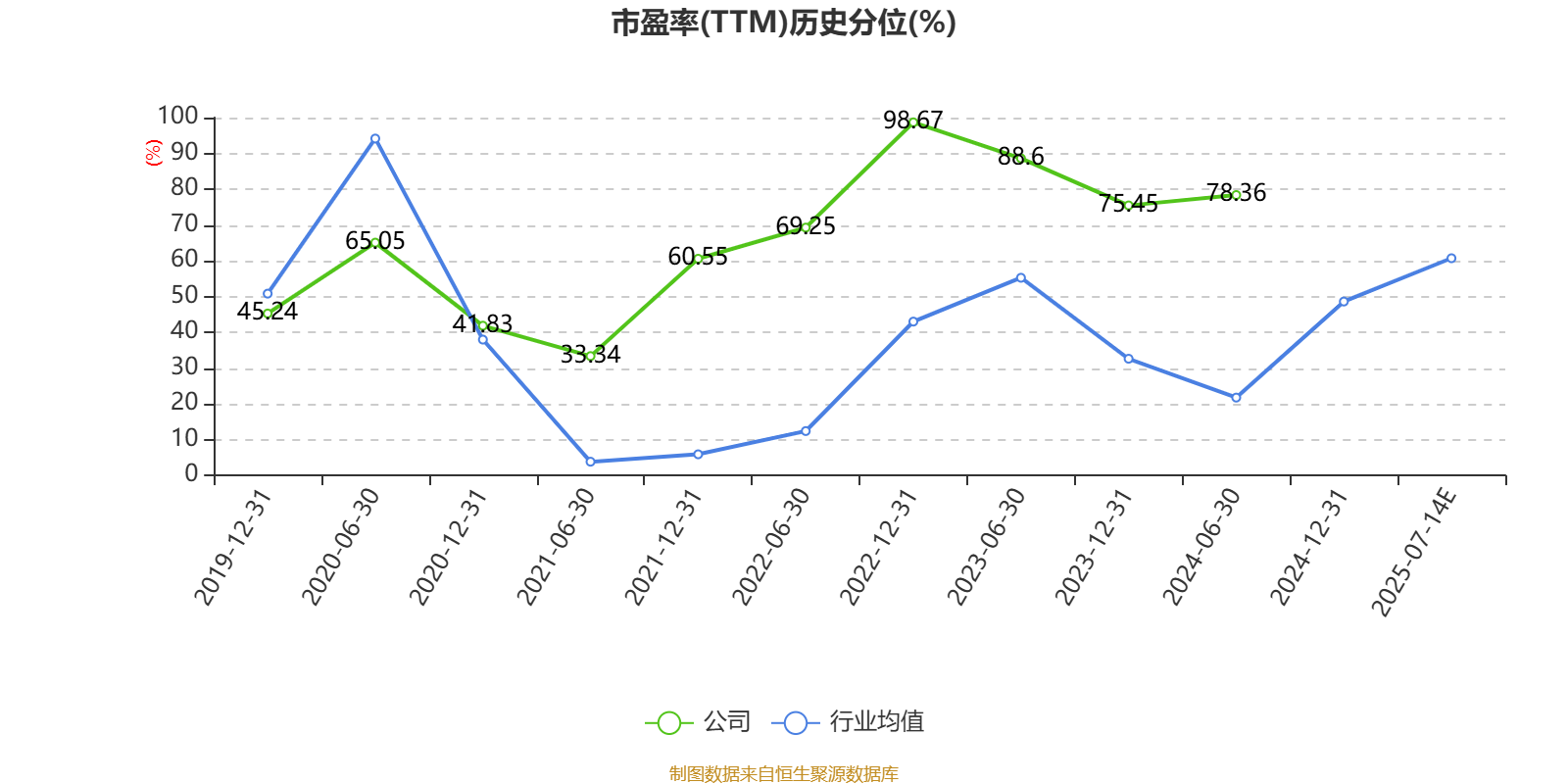 以本次披露业绩预告均值计算,公司近年市盈率(TTM)图如下所示: