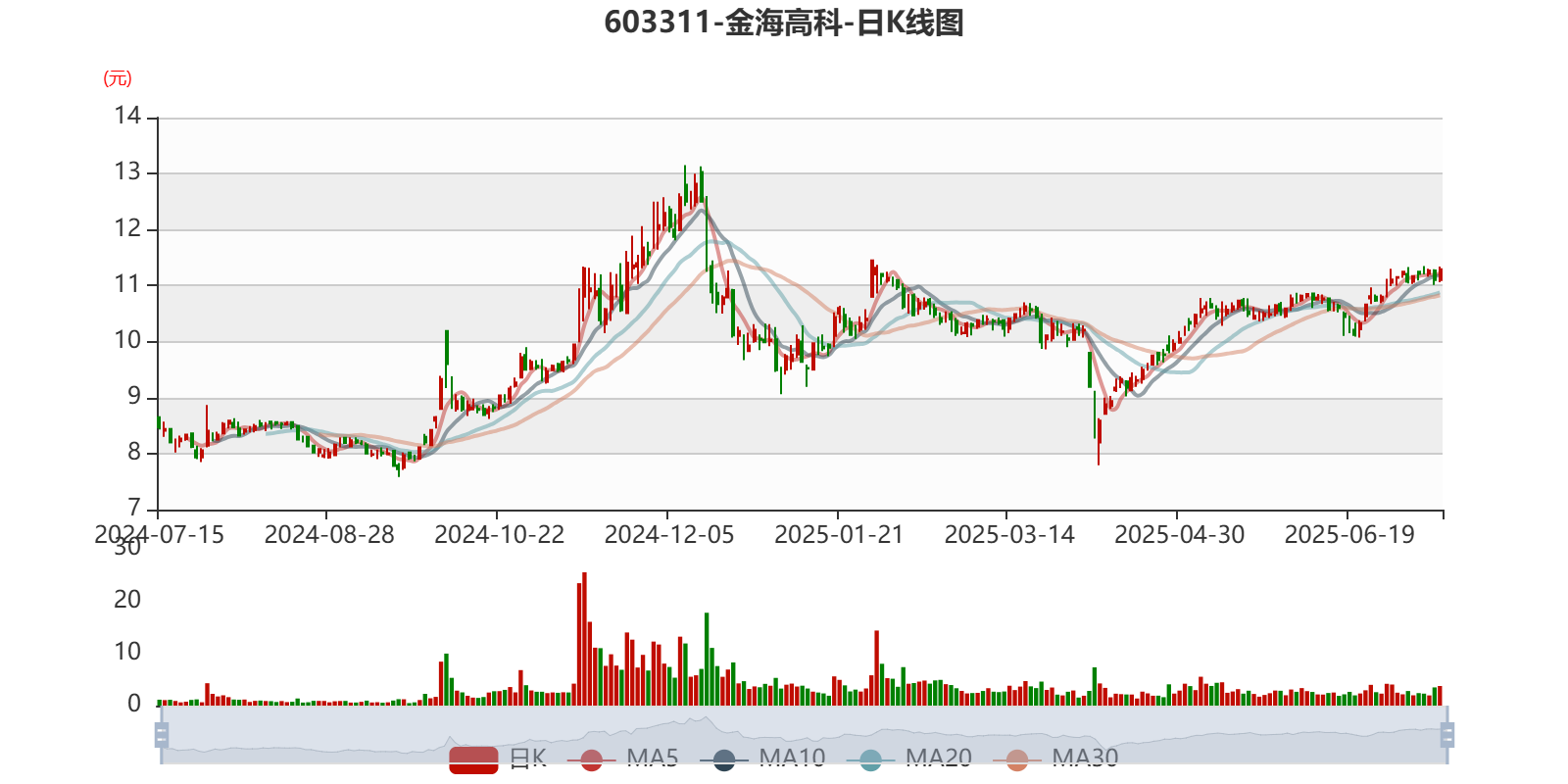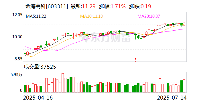 中证智能财讯金海高科(603311)7月14日晚间披露业绩预告,预计2025年上半年归母净利润5800万元至6200万元,同比增长57.03%-67.86%;扣非净利润预计3550万元至3775万元,同比增长2.95%-9.48%。以7月14日收盘价计算,金海高科目前市盈率(TTM)约为29.56倍-30.93倍,市净率(LF)约2倍,市销率(TTM)约3.22倍。