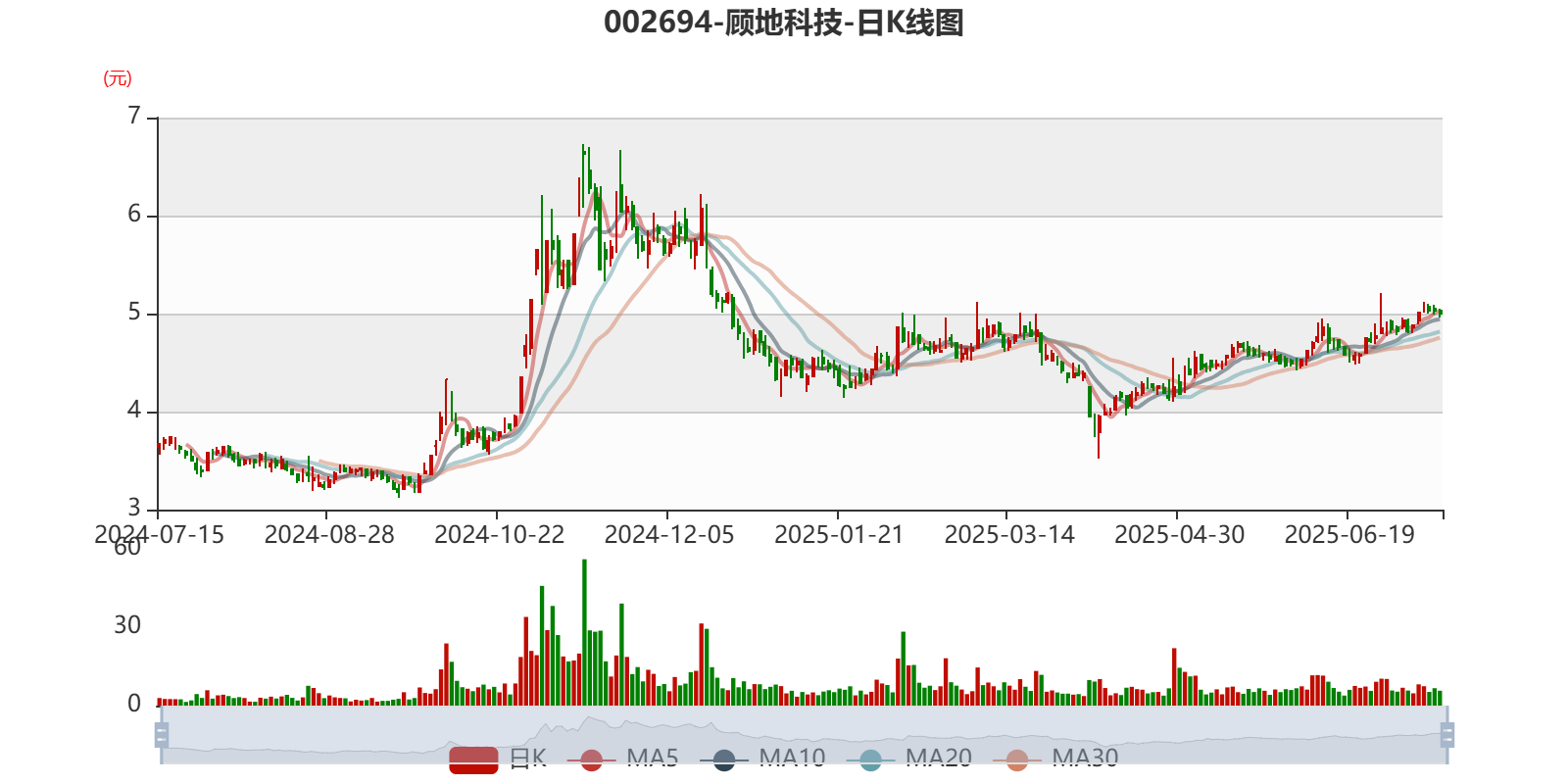 中证智能财讯顾地科技(002694)7月14日晚间披露业绩预告,预计2025年上半年归母净利润亏损2.60亿元至3.84亿元,上年同期亏损4016.81万元;扣非净利润亏损623.24万元至927.94万元,上年同期亏损6653.72万元;基本每股收益-0.36元/股至-0.53元/股。以最新收盘价计算,市净率(LF)约9.33倍,市销率(TTM)约4.31倍。
