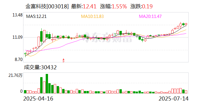 金富科技(SZ 003018,收盘价:12.41元)发布公告称,2025年7月10日14:50-16:15,金富科技接受深圳市国诚投资咨询有限公司等投资者调研,公司董事会秘书吴小霜,证券事务代表谢海桐参与接待,并回答了投资者提出的问题。