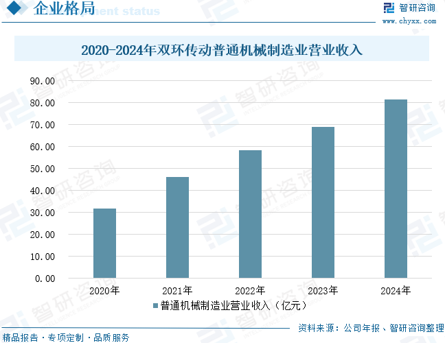 浙江双环传动机械股份有限公司主营业务为机械传动齿轮及其相关零部件的研发、设计与制造,主要应用领域涵盖汽车的传动系统、新能源汽车的动力驱动装置、非道路机械(含工程机械和农用机械)的传动装置、智能出行传动装置、智能家居传动装置,以及轨道交通、风力发电、电动工具、机器人自动化等多个行业门类中的驱动、传动应用场景。顺应我国经济结构的转型升级、高端装备和智能装备产业的不断发展,公司在机械传动领域多年深耕和既有优势的基础上逐步完成从传统齿轮产品向高精密齿轮及其相关零部件的转型升级,目前在国际市场已具有较高知名度。公司专注于齿轮传动产品制造,目前的主要产品为乘用车齿轮、商用车齿轮、工程机械齿轮、摩托车齿轮和电动工具齿轮、智能执行机构、工业机器人减速器及其他产品,主要面向车辆的电驱动系统、变速箱、车桥等,此外还涵盖了电动工具、轨道交通、风电、智能家居、智能出行以及工业机器人等多个应用领域。数据显示,2024年双环传动普通机械制造业营业收入为81.48亿元,同比增长18.21%。