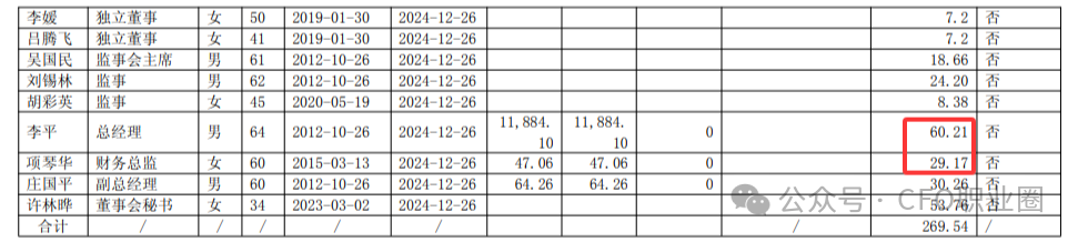 2024年,李平先生作为董事长、总经理的薪酬为60.21万元;项琴华女士作为财务总监的薪酬为29.17万元。