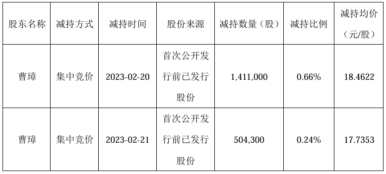 2023年2月,曹璋通过集中竞价的方式减持约192万股,合计套现约3499万元。