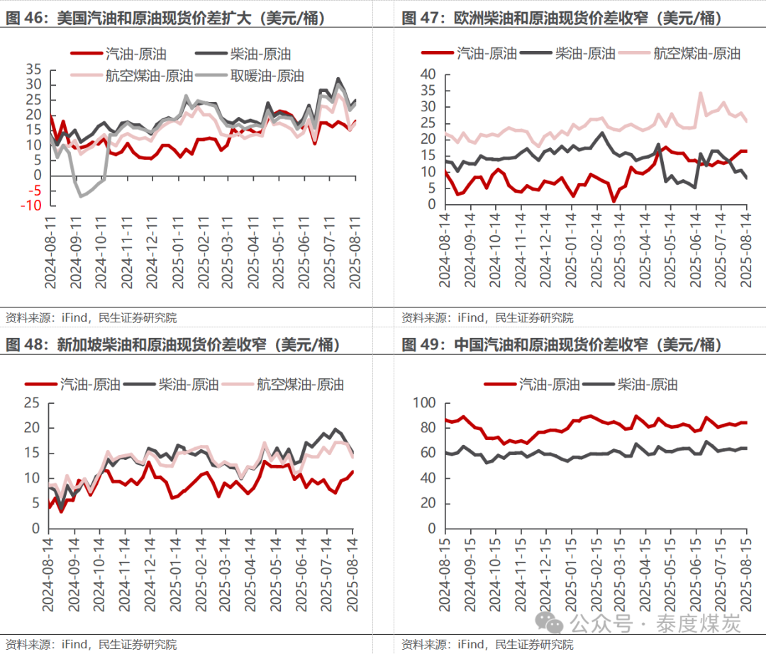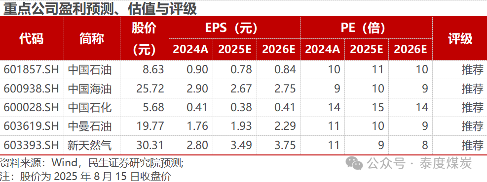 EIA和IEA进一步上调25年供给增速。三大国际石油机构发布8月石油月报,其中,1)EIA:25年供给、需求增速预期分别上调47、18万桶/日,25年全球供给、需求预测分别为10536、10372万桶/日,过剩164万桶/日;2)OPEC:25年供给增速预期上调1万桶/日、需求增速预期不变,25年非DOC供给、全球需求预测分别为6267、10514万桶/日,若DOC维持25H1的4111万桶/日的石油产量,则全球石油供需存在缺口136桶/日;3)IEA:25年供给、需求增速预期分别上调40、下调2万桶/日,预计25年全球供需过剩180万桶/日,供需过剩局面加剧。