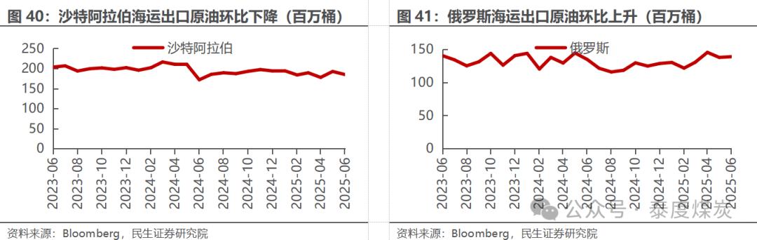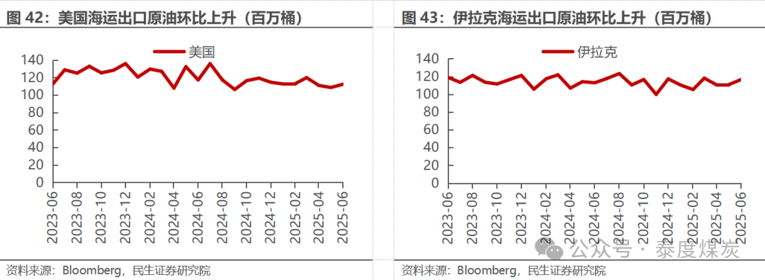 2)海运出口:沙特185百万桶,同比上升7.6%,环比下降4.0%;俄罗斯139百万桶,同比上升3.1%,环比上升0.8%;美国112百万桶,同比下降4.1%,环比上升3.5%;伊拉克117百万桶,同比上升3.3%,环比上升5.2%。