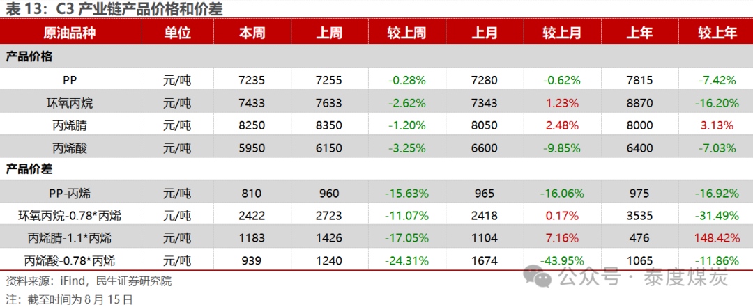 本周东华能源跌幅最大。截至8月15日,石油石化行业中,公司周涨跌幅后5位分别为:东华能源下跌11.49%,茂化实华下跌3.04%,国际实业下跌3.02%,三联虹普下跌3.00%,宝利国际下跌2.44%。