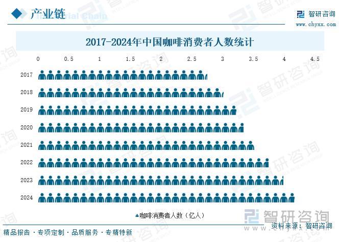 随着咖啡文化在中国日益普及,消费者的咖啡消费习惯逐渐从偶尔享受转变为日常生活必需,据统计,2024年我国咖啡消费者人数达4.17亿人,同比增长4.47%,我国咖啡消费群体不断扩大,为云南咖啡行业发展带来广阔的增长空间。