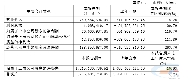 福建水泥(600802)8月23日披露2025年半年度报告。2025年上半年,公司实现营业总收入7.7亿元,同比增长8.26%;归母净利润2066.7万元,同比扭亏;扣非净利润1285.36万元,同比扭亏;经营活动产生的现金流量净额为1.89亿元,上年同期为-1.15亿元;报告期内,福建水泥基本每股收益为0.045元,加权平均净资产收益率为1.79%。