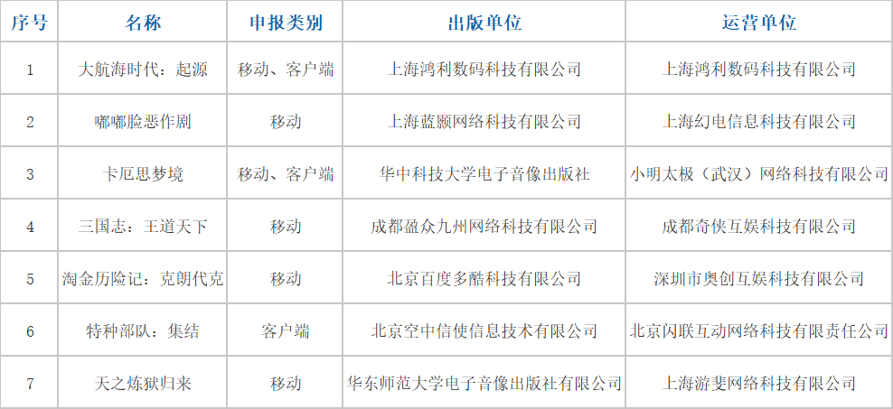 进口版号方面,则是有7款游戏过审,其中移动游戏4款,移动+客户端游戏2款,客户端游戏1款。