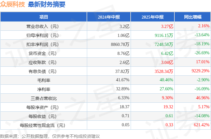 持有众辰科技最多的基金为华泰保兴吉年福定开混合,目前规模为1.85亿元,最新净值1.4247(8月26日),较上一交易日上涨0.1%,近一年上涨40.78%。该基金现任基金经理为田荣。