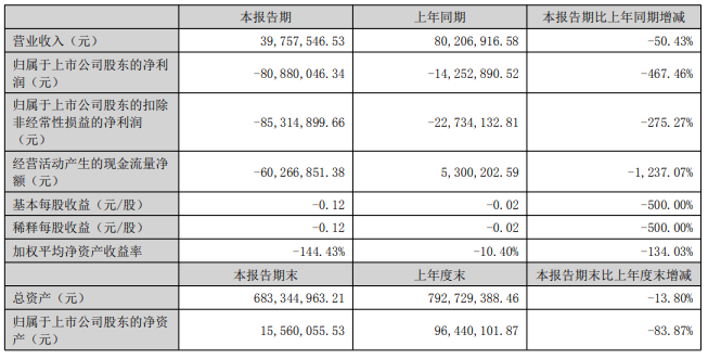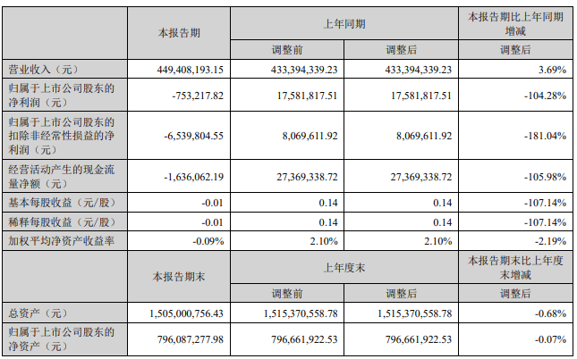 报告显示,2025年上半年崧盛股份实现整体营业收入4.49亿元,同比增长3.69%;归属上市公司净利润亏损75.32万元,同比下降104.28%。