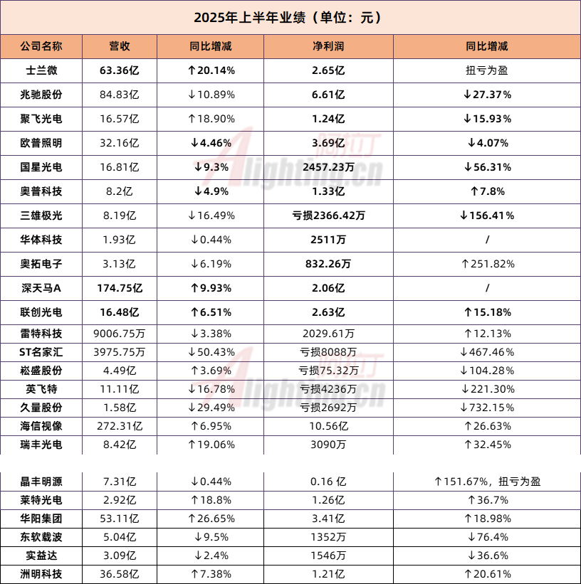 在2025年上半年,LED照明产业链上的企业们经历了一场充满挑战与机遇的“大考”,从芯片制造到终端应用,各环节企业表现各异,整体呈现出分化态势。以下是对部分企业半年报的综合整理。
