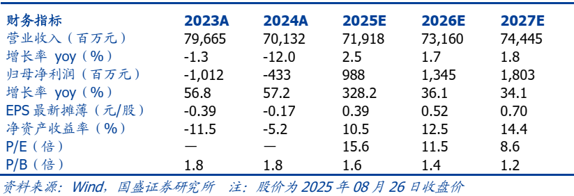 事件:公司发布2025年半年报。公司上半年实现营业收入346.75亿元,同比减少8.32%;归属于母公司所有者的净利润3.68亿元,同比增长579.54%;基本每股收益0.14元,同比增长600.0%。