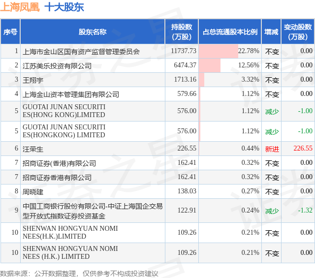 根据上海凤凰2025年中报公布的十大股东详情如下: