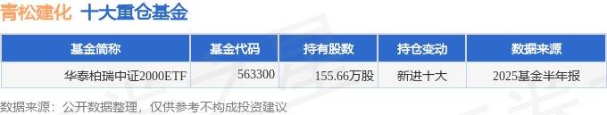 建议关注公司应收账款状况(应收账款/利润已达127.54%) 持有青松建化最多的基金为华泰柏瑞中证2000ETF,目前规模为19.84亿元,最新净值1.3037(8月27日),较上一交易日下跌2.35%,近一年上涨78.08%。该基金现任基金经理为柳军李沐阳。