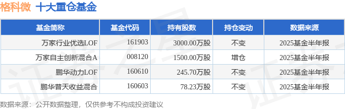 建议关注公司现金流状况(货币资金/流动负债仅为56.65%、近3年经营性现金流均值/流动负债仅为6.9%)建议关注公司债务状况(有息资产负债率已达55.89%、有息负债总额/近3年经营性现金流均值已达21.86%)建议关注公司应收账款状况(应收账款/利润已达316.93%) 持有格科微最多的基金为万家行业优选LOF,目前规模为78.3亿元,最新净值1.3746(8月27日),较上一交易日上涨0.2%,近一年上涨105.7%。该基金现任基金经理为黄兴亮。