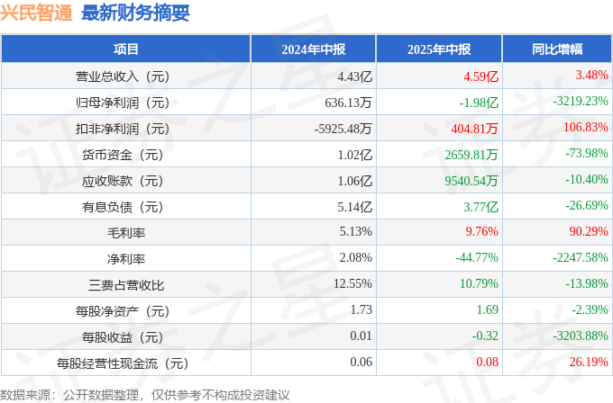 据证券之星公开数据整理,近期兴民智通(002355)发布2025年中报。截至本报告期末,公司营业总收入4.59亿元,同比上升3.48%,归母净利润-1.98亿元,同比下降3219.23%。按单季度数据看,第二季度营业总收入2.33亿元,同比下降0.34%,第二季度归母净利润-3.34亿元,同比下降51113.63%。本报告期兴民智通短期债务压力上升,流动比率达0.6。