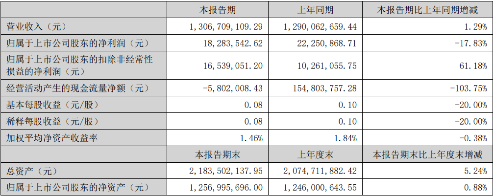 太龙股份主营业务收入以半导体分销业务为主,以商业照明业务为辅,同时公司积极向创新科技型企业转型。上半年公司实现营业收入13.07亿元,同比增长1.29%;归属于上市公司股东的净利润1828.35万元,同比下降17.83%。