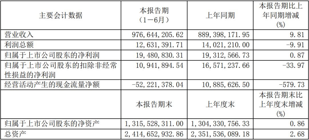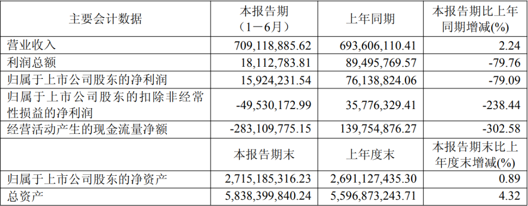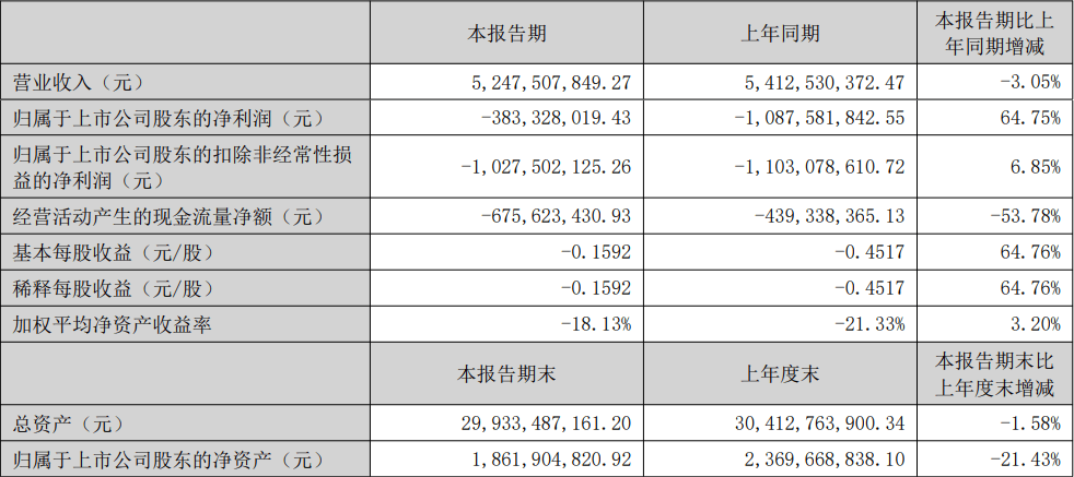 2025年上半年,公司实现营业收入52.48亿元,同比下降3.05%;归属于上市公司股东的净亏损3.83亿元。