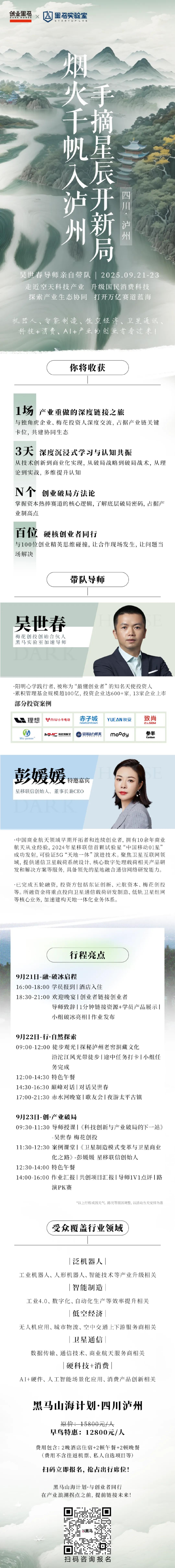 9月21日-23日,吴世春将亲自带队100家企业家,去四川泸州线下游学,探访下沉创新,寻找增长新引擎。