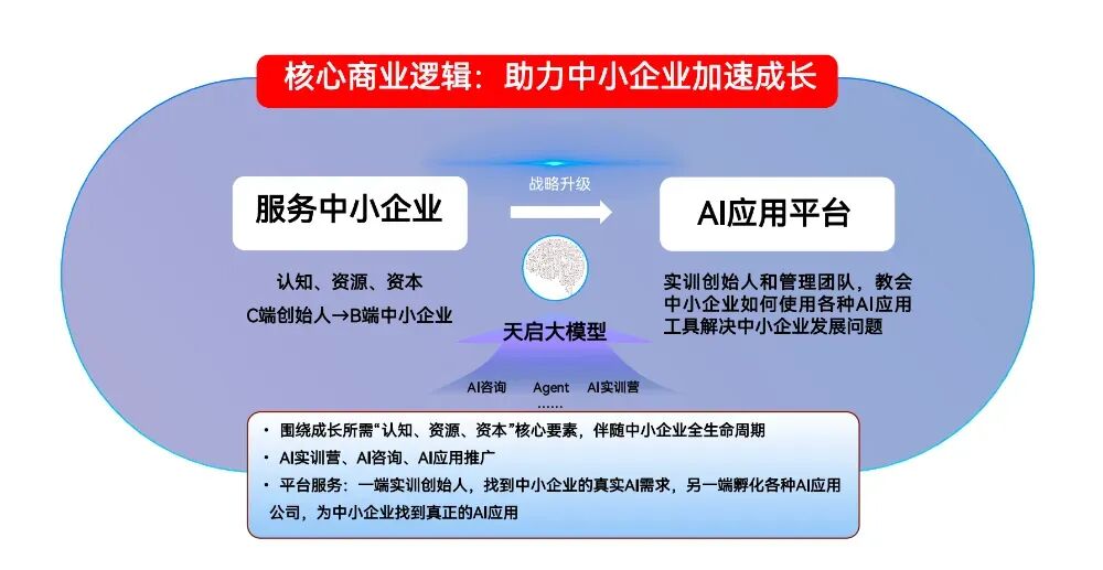 同时,创业黑马还在大力构建AI 应用平台,借助 “天启大模型” ,通过 AI 咨询、Agent、AI 实训营等形式,为企业注入 AI 动能 。聚焦实训创始人与管理团队,传授各类 AI 应用工具使用方法,助力企业用AI 破解发展难题。