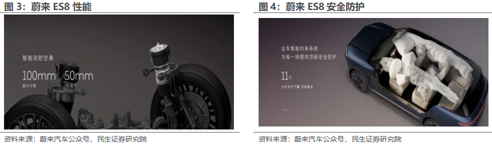 8月21日,蔚来全新ES8开启预售。9月下旬上市交付。在设计方面,5280mm车长与3130mm轴距为中国最大的纯电 SUV,配备光䦀尾灯与智能高清投影大灯。在内饰方面,采用环抱式座舱与无主灯漫反射氛围灯,带来沉浸体验。在储物方面,同级领先,六人满座依然可装载777L行李。在性能方面,900V高压架构与双电机实现3.97秒零百加速和635公里续航,智享底盘与智能双腔空悬兼顾灵活与舒适。在安全方面,ES8以笼式车身结构、11个安全气囊和全方位约束系统守护安全,并创新搭载主驾智能约束与大躺姿全向安全系统,全面保障驾乘安全。