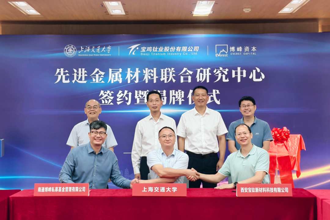 校企联合研究中心由钛镍创新中心依托建设单位西安宝钛新材料科技有限公司牵头,联合上海交通大学材料科学与工程学院、南通博峰私募基金管理有限公司共同组建,旨在依托上海交大顶尖的科研实力,以及在钛、镁等材料研究方面的先进成果,借助博峰资本丰富的资本运作、产业孵化及战略咨询经验,融合宝钛集团完备的产业链群,以及在工程化应用、产业化推广方面的优势,建成国内领先、国际知名的高能级“产学研金”平台,在实现关键技术突破、加快科技成果转化、推进产业转型升级、引进培养高层次人才等方面发挥更大作用。