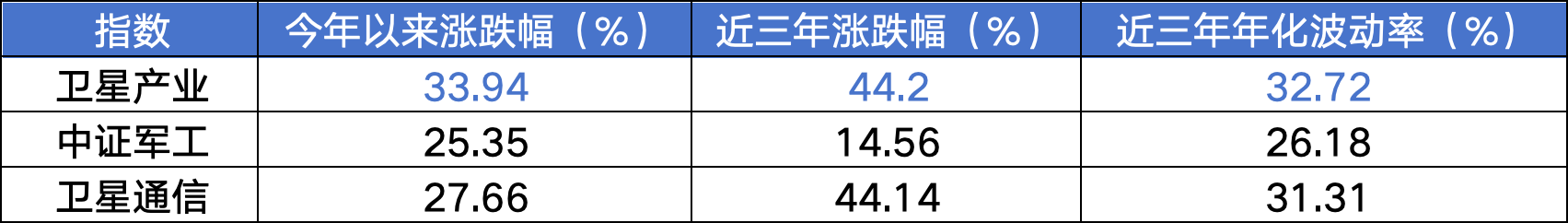 相比于同类指数,弹性更好。截至9月1日,卫星产业指数今年以来涨幅超33%。拉长维度来看,历史表现、波动率均超越同类指数。