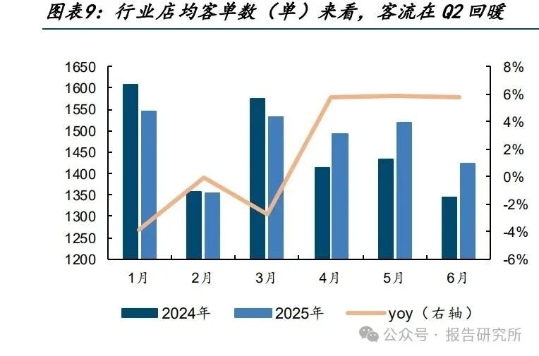 同店增长放缓:客流呈回暖趋势、客单持续下滑。根据中国药店数据,1H25 行业总体表现为“量增价减”,客流在 2Q25 有所回暖,4-6 月同 比均实现正增长,但 1H25 平均客单价总体表现均承压。因此,行业 1H25 同店预计延续 24 年以来的弱增长表现。