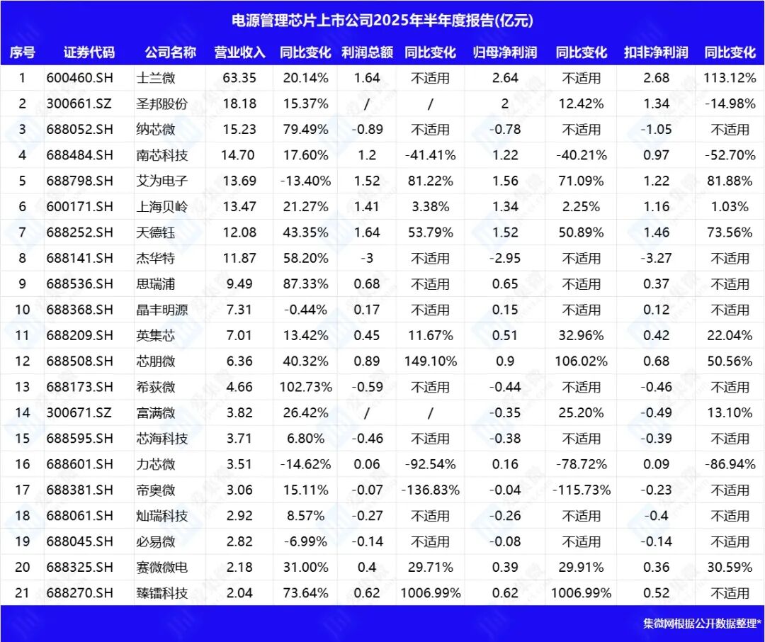 这种分化不仅反映企业个体的经营差异,更折射整个电源管理芯片赛道在产业升级阶段的战略变化。集微网统计了20家本土电源管理芯片上市半年报,从整体格局、企业表现、驱动因素及未来趋势等维度展开观察。