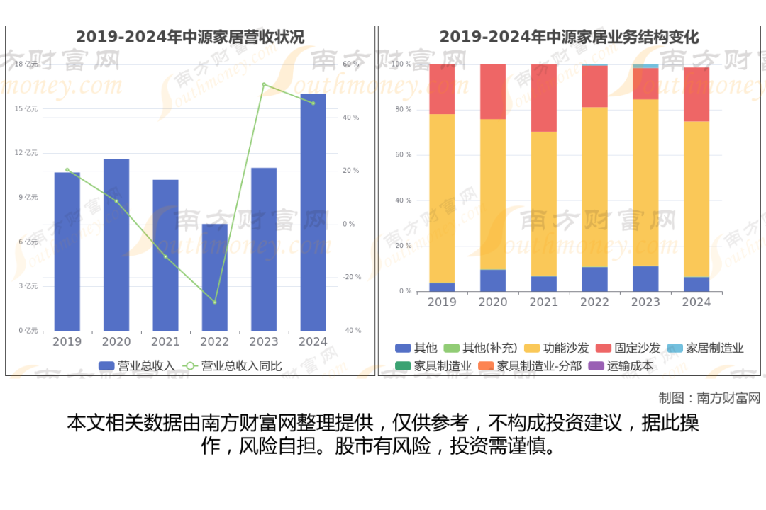 (如上图)中源家居2024年全年营业收入为16.02亿,同比增长45.42%,近五年复合年增长率8.34%。