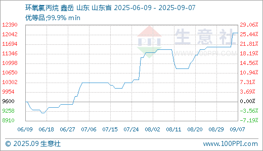 据生意社监测,环氧氯丙烷09月07日最新价格12100.00元/吨,最近5天上涨4.31%,20天上涨10.00%,60天上涨17.48%。