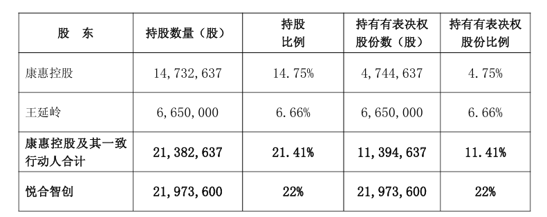 2025年3月20日, 陕西康惠制药股份有限公司控股股东陕西康惠控股有限公司与嘉兴悦合智创科技合伙企业(有限合伙)签署《股份转让协议》, 康惠控股拟向悦合智创协议转让其持有上市公司21,973,600股股份,转让价格为人民币24.70元/股。