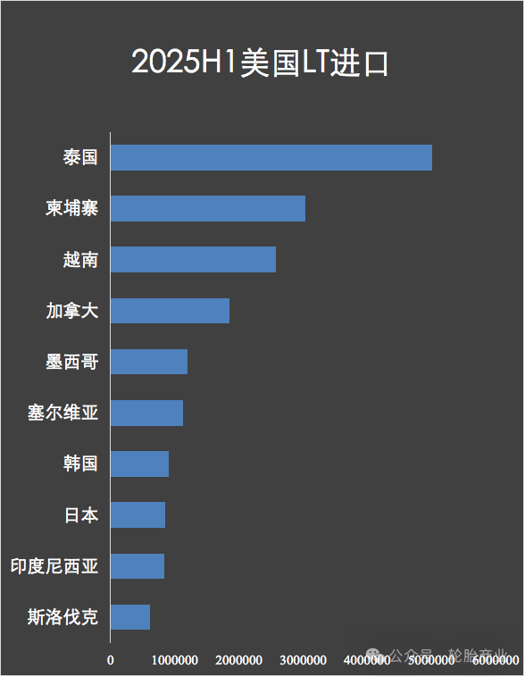 另外,拉美的产能扩张主要集中于SUV和皮卡轮胎。在美国,2024年SUV占新车市场的比例超过40%;同样的情况也发生在墨西哥。2025年上半年,墨西哥出口到美国的轻卡轮胎同比增加21.6%,接近120万条。