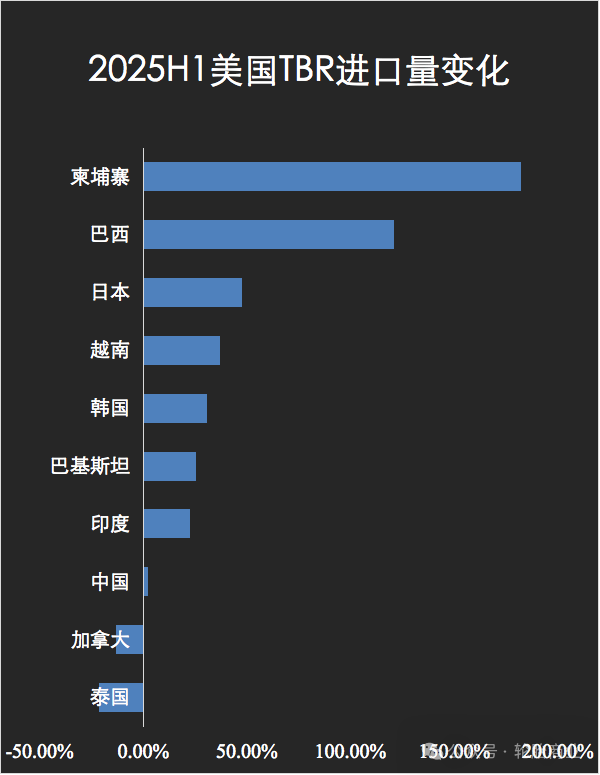 据统计,2025年前6个月,巴西对美国出口了超过37万条卡车胎,单胎均价在1522元,价格高出了柬埔寨近一倍。