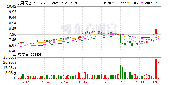 锐奇股份今日涨停,全天换手率12.98%,成交额2.65亿元,振幅19.88%。龙虎榜数据显示,机构净买入321.79万元,营业部席位合计净买入5823.93万元。