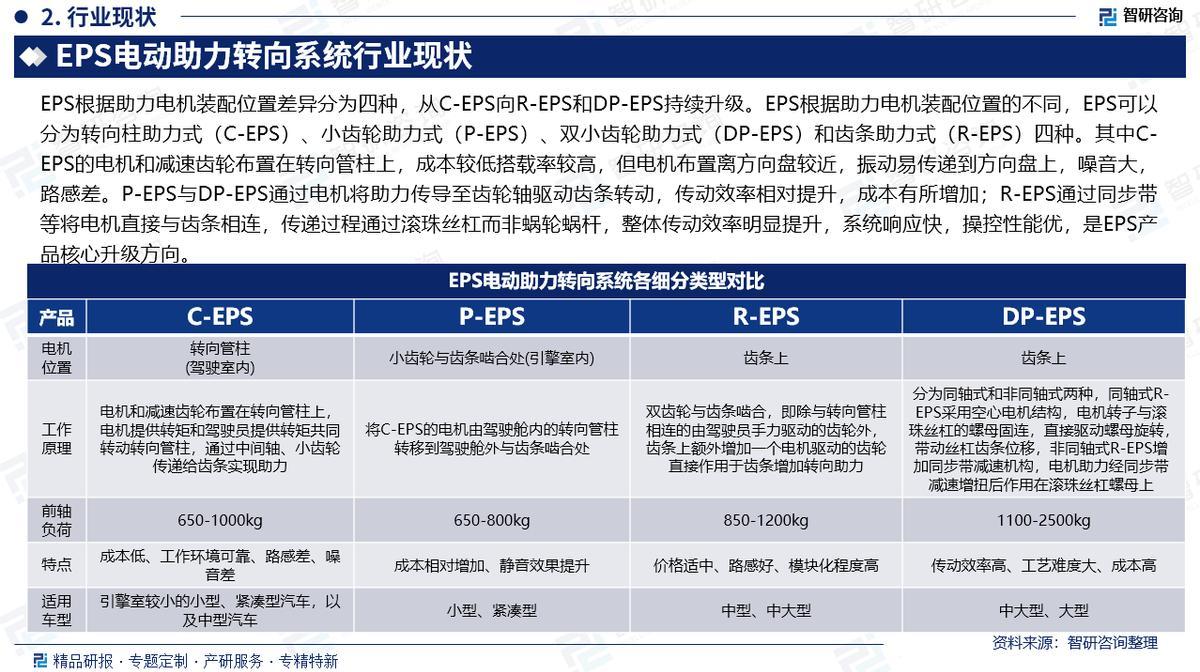 《2025-2031年中国EPS电动助力转向系统行业市场全景调研及投资机会研判报告》基于最新、最全的中国产业链数据,融合权威官方统计、深度企业调研、资本市场洞察及全球信息,通过严格的智能处理和独家算法验证,确保分析结论高度可靠、透明且可追溯。