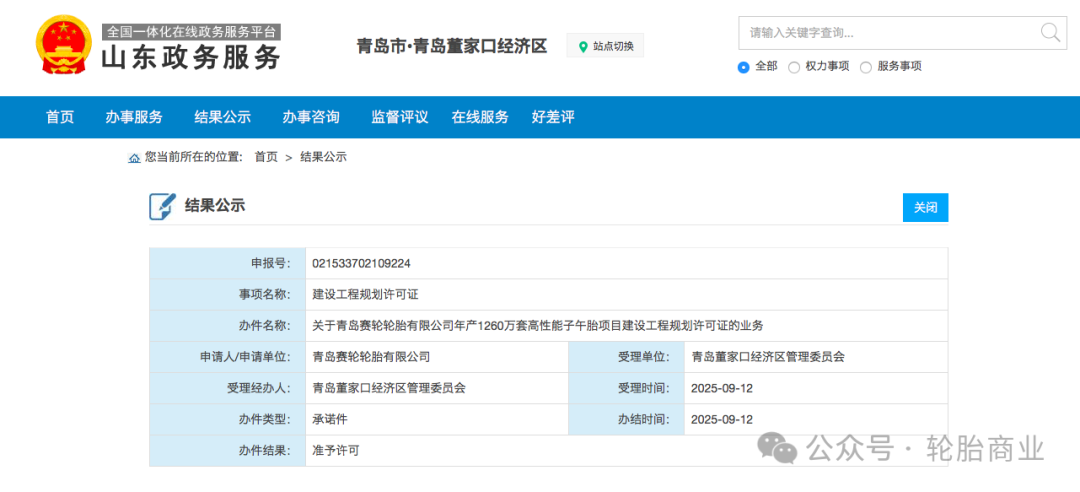 2025年下半年开始,赛轮就陆续发布数张公告,公示全球产能规划。2025年9月12日,青岛董家口经济区正式核发了“青岛赛轮轮胎有限公司年产1260万套高性能子午胎项目建设工程规划许可证”,赛轮国内产能又有增加。