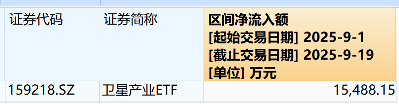 卫星产业ETF(159218)是全市场首只跟踪中证卫星产业指数的标的,全面覆盖上面细分环节和公司个股。即便在9月板块整体震荡期间,ETF也依然吸引了超过1.54亿元的资金流入——这说明不少人正在趁着这波机会布局,对卫星产业的长期发展依然保持信心。