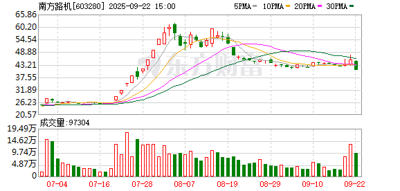 南方路机(603280)今日跌停,全天换手率34.82%,成交额4.03亿元,振幅10.28%。龙虎榜数据显示,营业部席位合计净卖出6747.47万元。